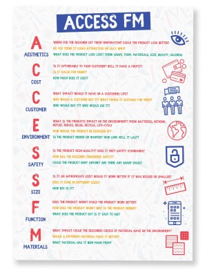 £17.50Introducing the Product Design Checklist – This highly visual and impactful checklist can be used to motivate and reward learners. The checklist allows the teacher to motivate and empower students on their journey to becoming a skilled designer with this handy little postcard and sticker pack. Specific skill stickers can be awarded for subject related skills and students can collect stickers to show progression and attainment. Every pack comes with 40 a5 postcard and 6×40 packs of stickers. Sure to be a big hit with parents too! A very visual indicator of students achievement in the D&T Department!