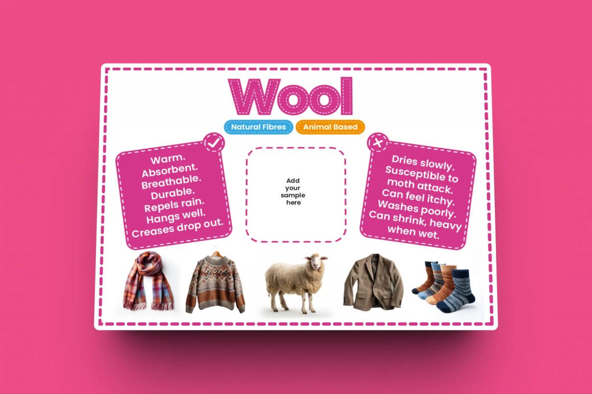 £1.95Just add your own swatch of each textile to make an informative and accessible display about a range of key textiles materials.