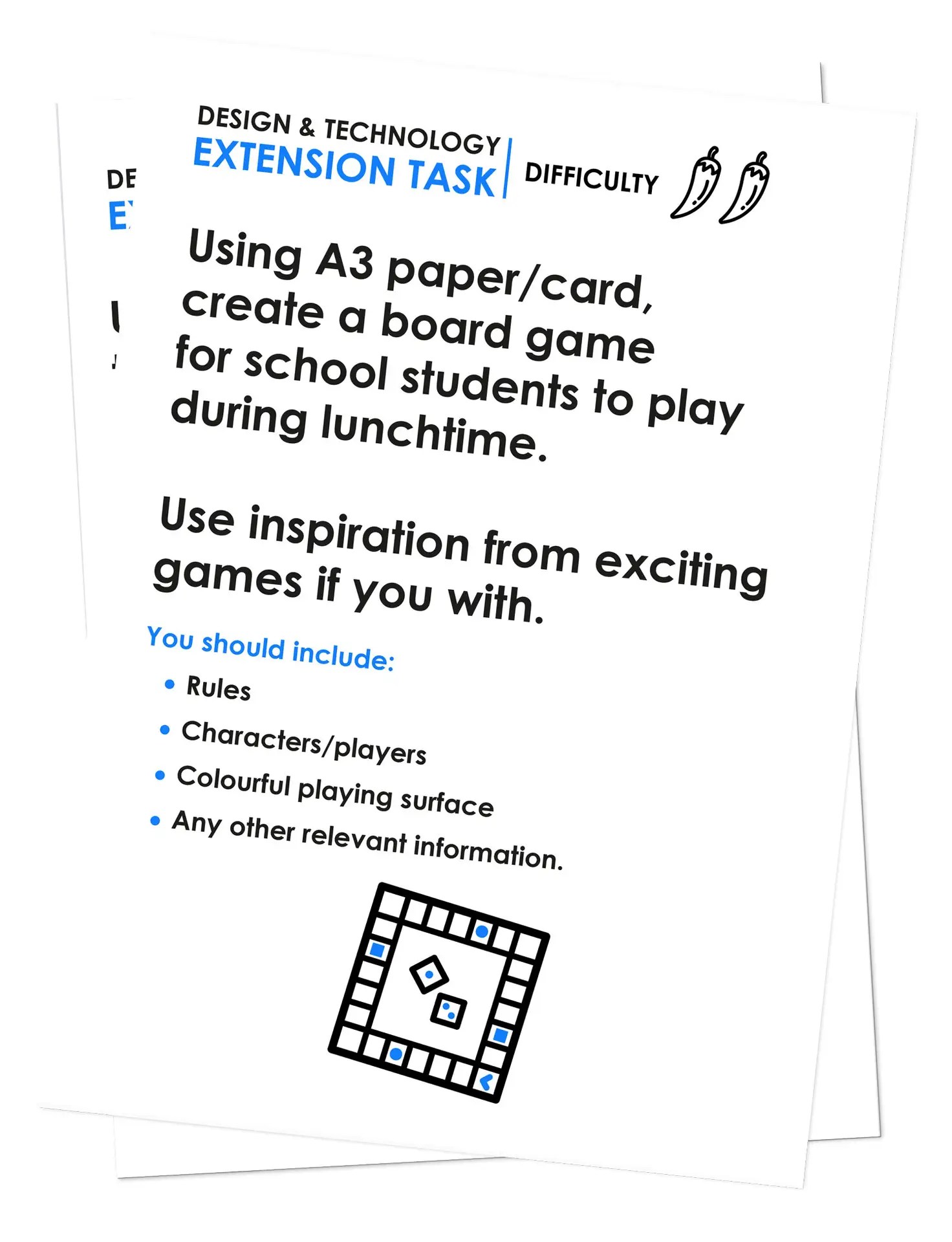 It is designed to be cut out and pinned to a noticeboard where students can differentiate and choose tasks if they have completed their work. It can also be used as a teacher cover resource.