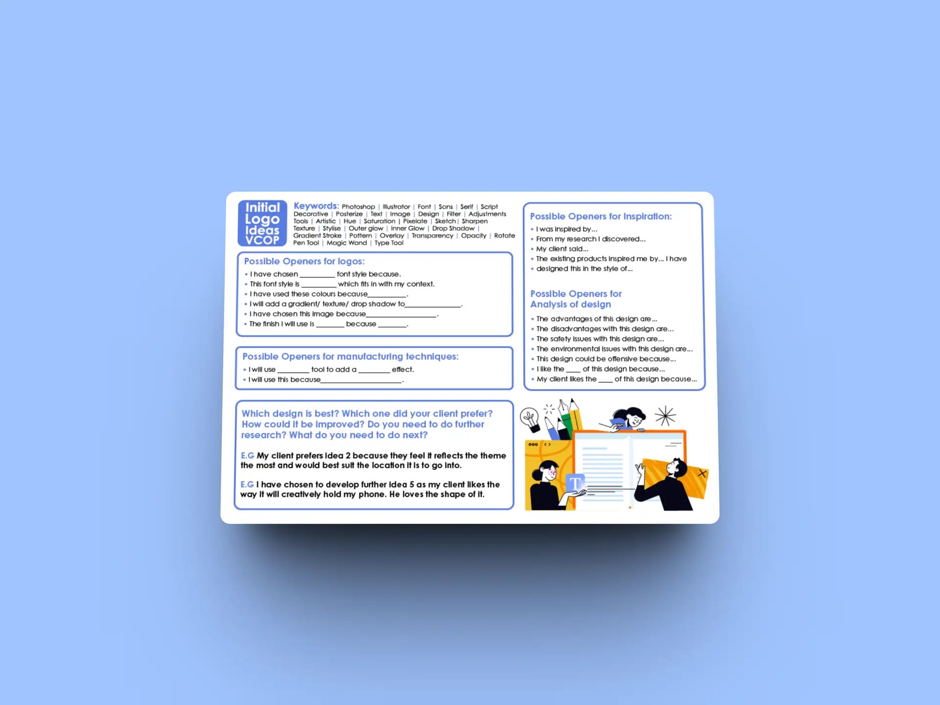 Annotation VCOP and sentence starters, suitable for KS4 Graphic design.
