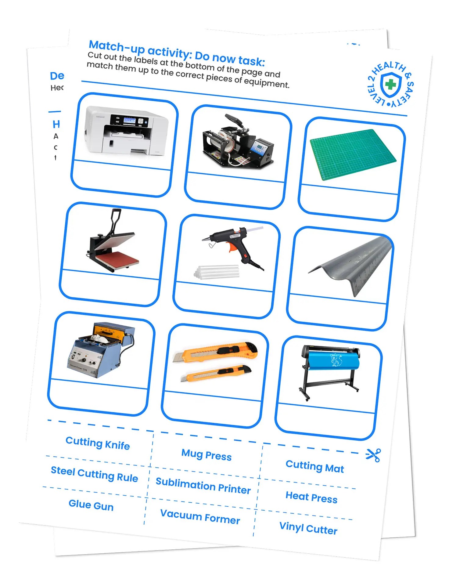 Health and safety level 2 worksheets designed to introduce students to tools, equipments and hazards in the workshop.
