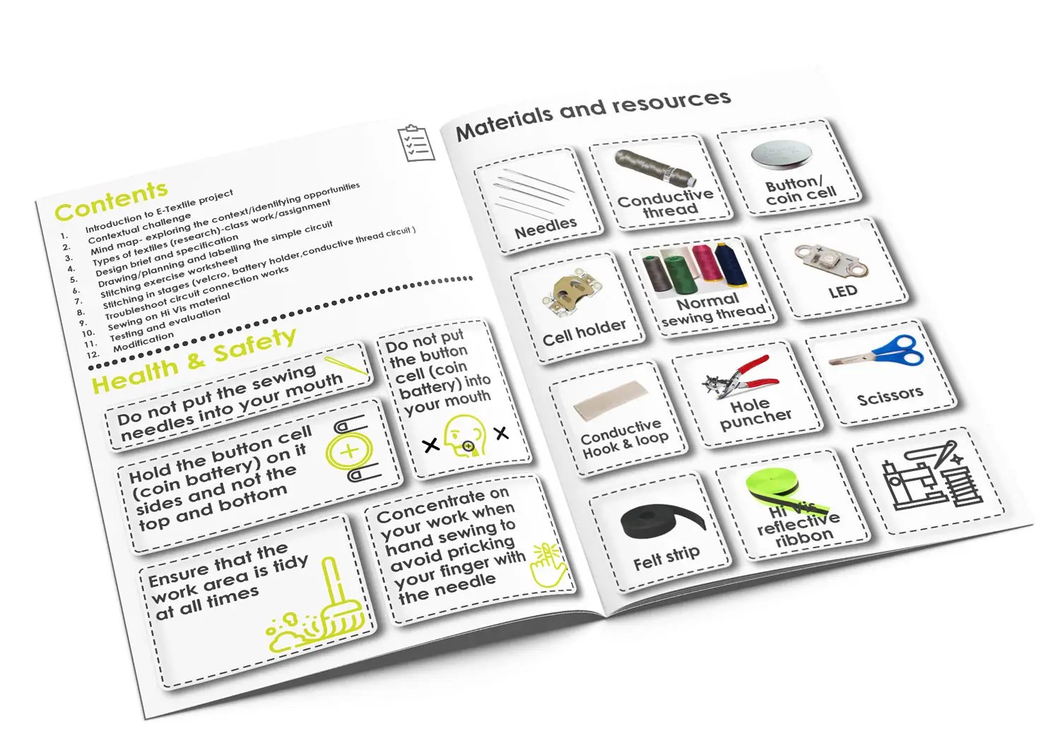 The Safety in the Dark workbook (24 pages) supports students in creating an LED powered safety garment.